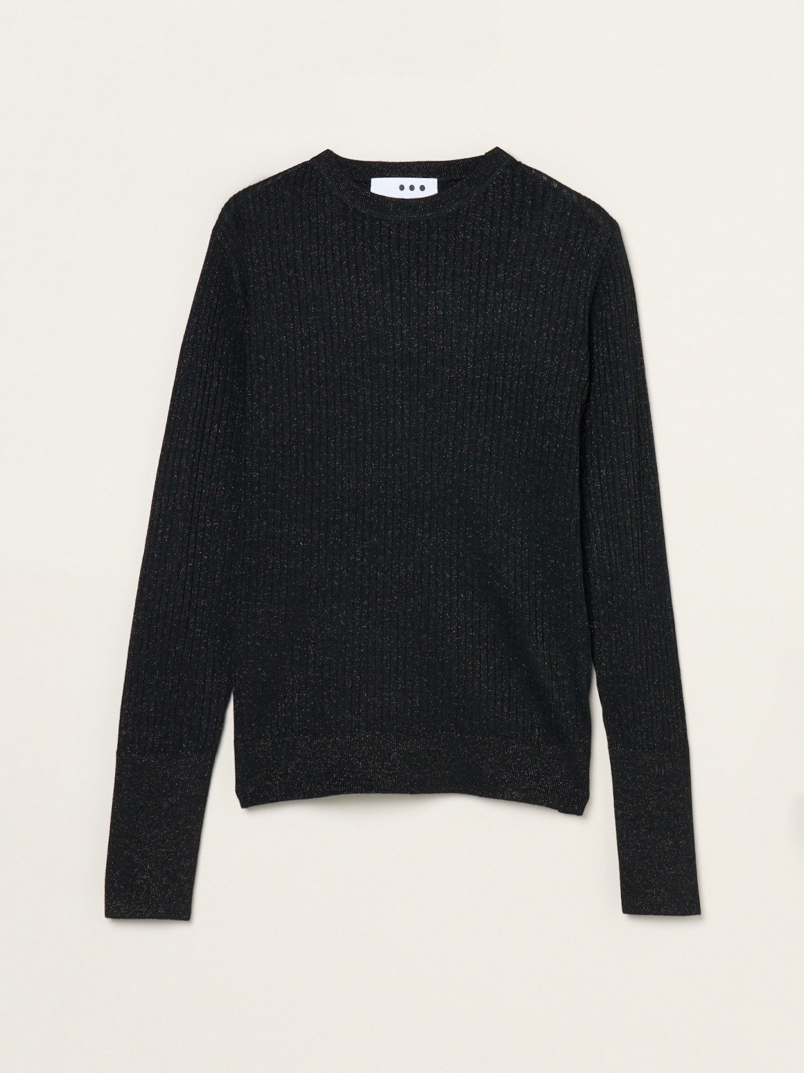 three dots Lurex sweater rib knit tee スリードッツ トップス ニット ブラック ベージュ【送料無料】