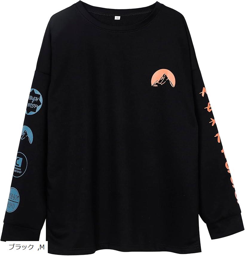 ロング Tシャツ トレーナー ゆったり カジュアル 長袖(ブラック, M)