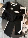 スポーツスーツ レディース 2 枚のセット 半袖 ロングパンツ クルーネック 薄手 夏 無地 刺繍 カジュアル ファッショ ゆったり 通勤 着心地がいい 通気性 涼しい フィス オフィスカジュアル カジュアルな衣装| 2 枚のセット|複雑な刺繍
