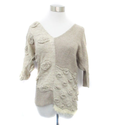 【中古】トゥエンティーミリオンフラッグメンツ 20,000,000fragments ニット セーター Vネック 七分袖 切替 花モチーフ アルパカ混 モヘヤ混 2 グレー /HO7 レディース 【ベクトル 古着】 231013