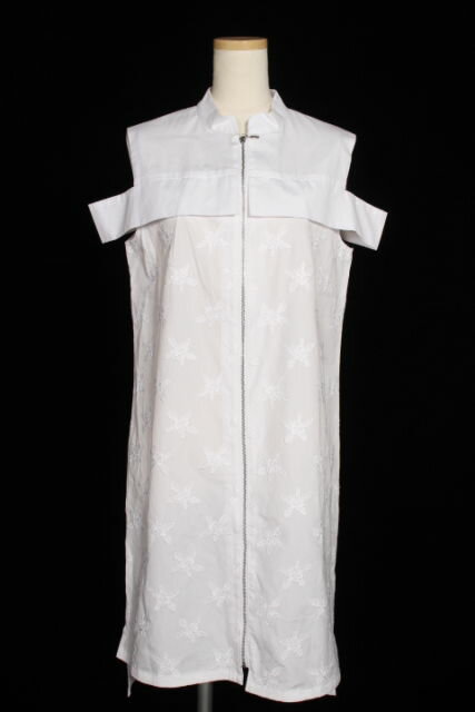 【中古】 トゥエンティーミリオンフラッグメンツ 20000000 fragments ワンピース フラワー 刺繍 花柄 膝丈 ノースリーブ コットン 2 ホワイト /TK レディース 【ベクトル 古着】 190608