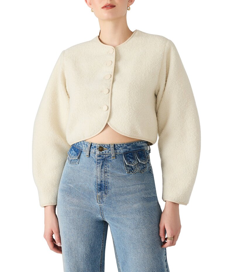 スティーブ マデン レディース アウター コート クルーネック ジャケット Steve Madden Emili Crew Neck Long Sleeve Boucle Jacket Cream クリーム
