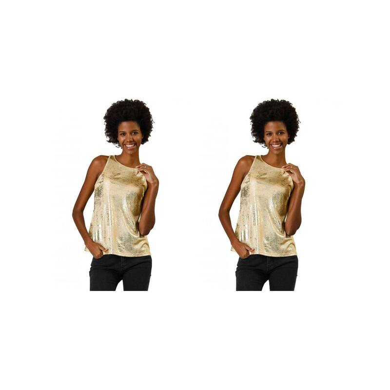 アレグラ ケー レディース トップス Tシャツ クルーネック トール ノースリーブ ALLEGRA K 2 Packs Women's Metallicrew Neck Sleeveless Cam Tank Tops 2 Packs Gold ゴールド