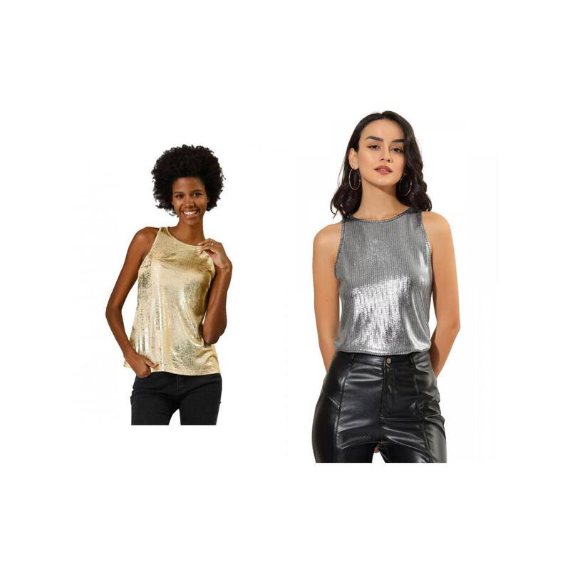 アレグラ ケー レディース トップス Tシャツ クルーネック トール ノースリーブ ALLEGRA K 2 Packs Women's Metallicrew Neck Sleeveless Cam Tank Tops Gold Silver ゴールド