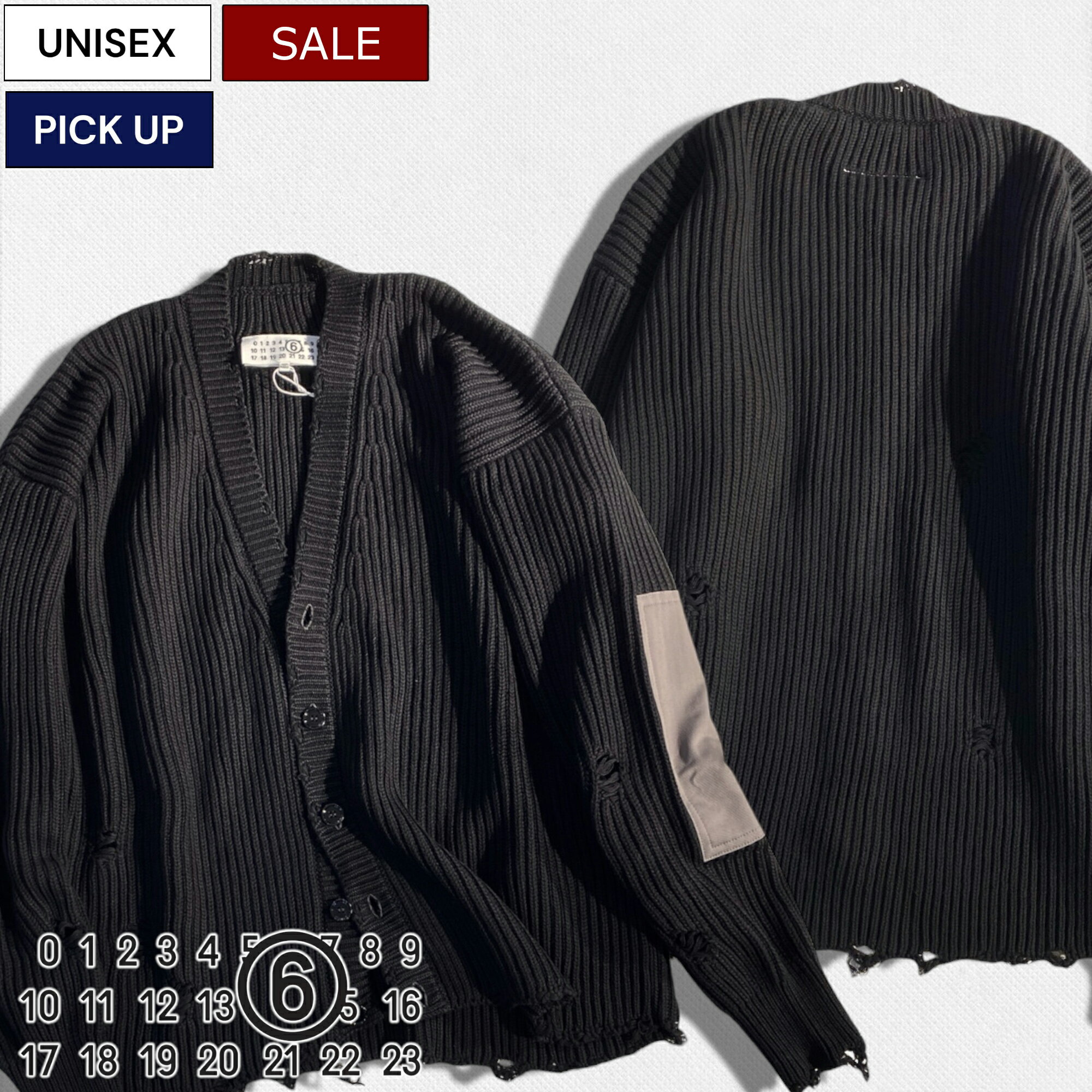 【定価116,600円(税込)】MM6 Maison Margiela エムエムシックス メゾンマルジェラ 高い防寒性を持ったリブ編みのローゲージニットにらしさ溢れるダメージをデザイン!大人の余裕漂う デストロイ加工コットンニットカーディガン ブラック SH0P0001 ユニセックス 男女兼用 la1