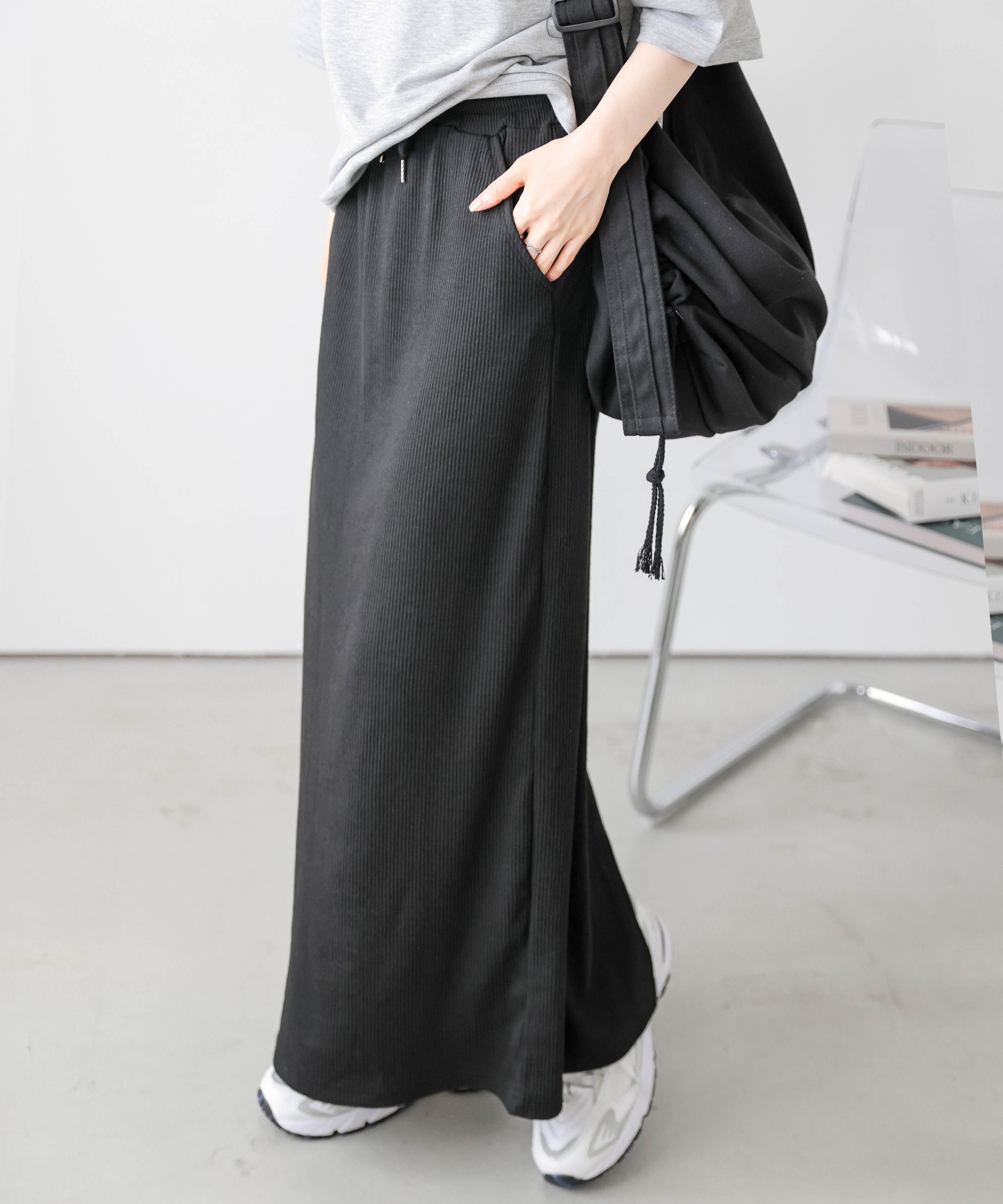 La-gemme リラックスリブスカート ラジュール スカート ロング・マキシスカート グレー ベージュ ブラウン ブラック