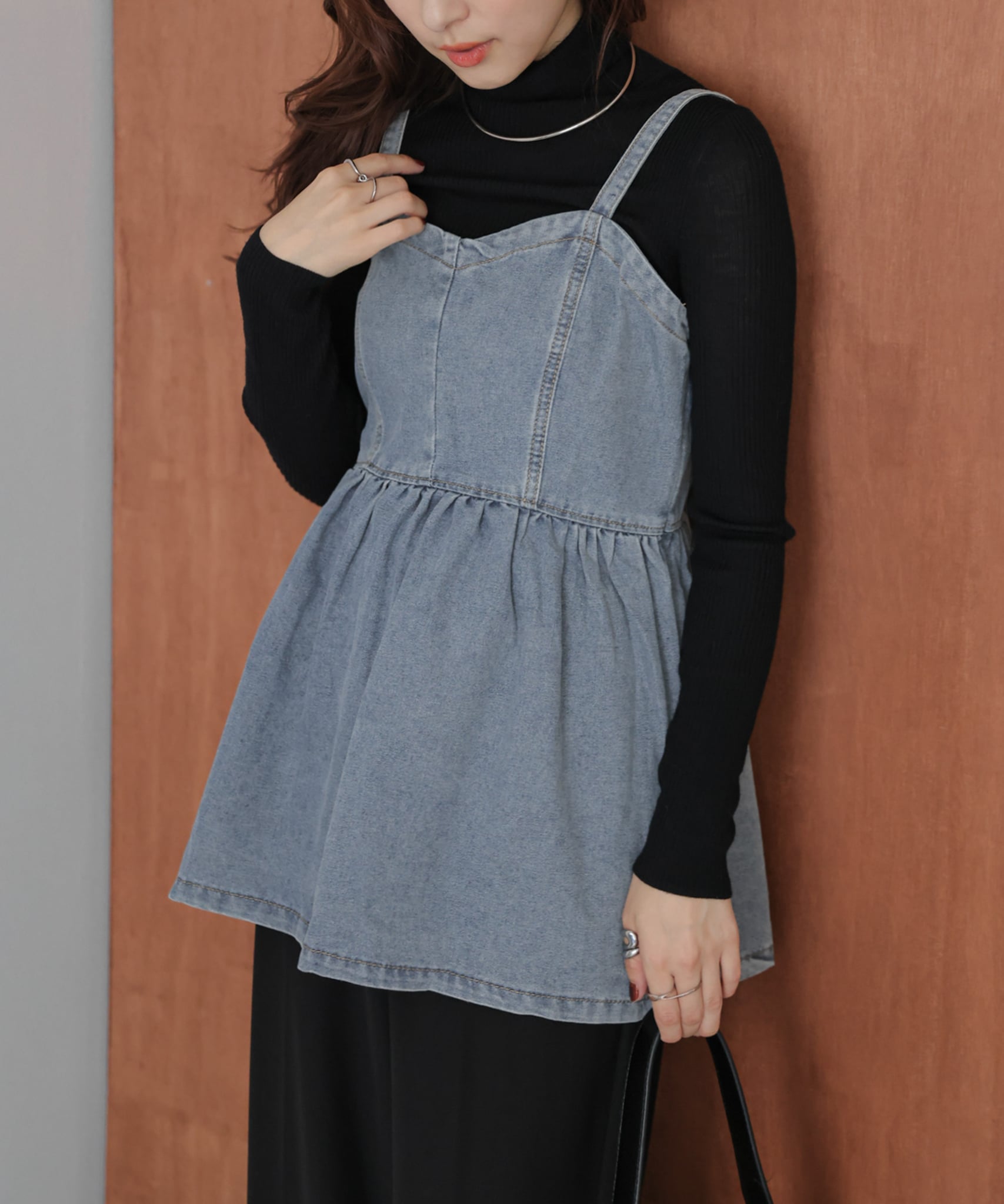 【SALE/50%OFF】La-gemme デニムペプラムキャミソール ラジュール トップス キャミソール ブルー ブラック