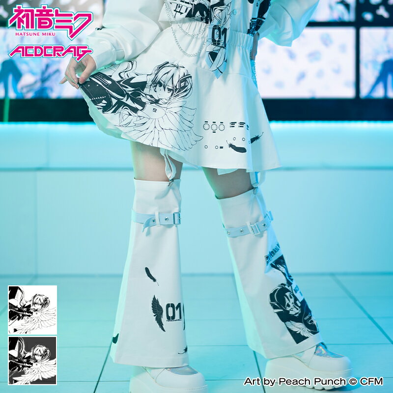 初音ミク レッグ付きスカート ミニ丈 ファッション 原宿 原宿系 ミク パンク ロック レッグウォーマー 水色 サイバー サブカル プリント 個性的 派手カワ ダンス 衣装 ダンス衣装 ホワイト ブラック レディース メンズ 大きいサイズ ACDC RAG