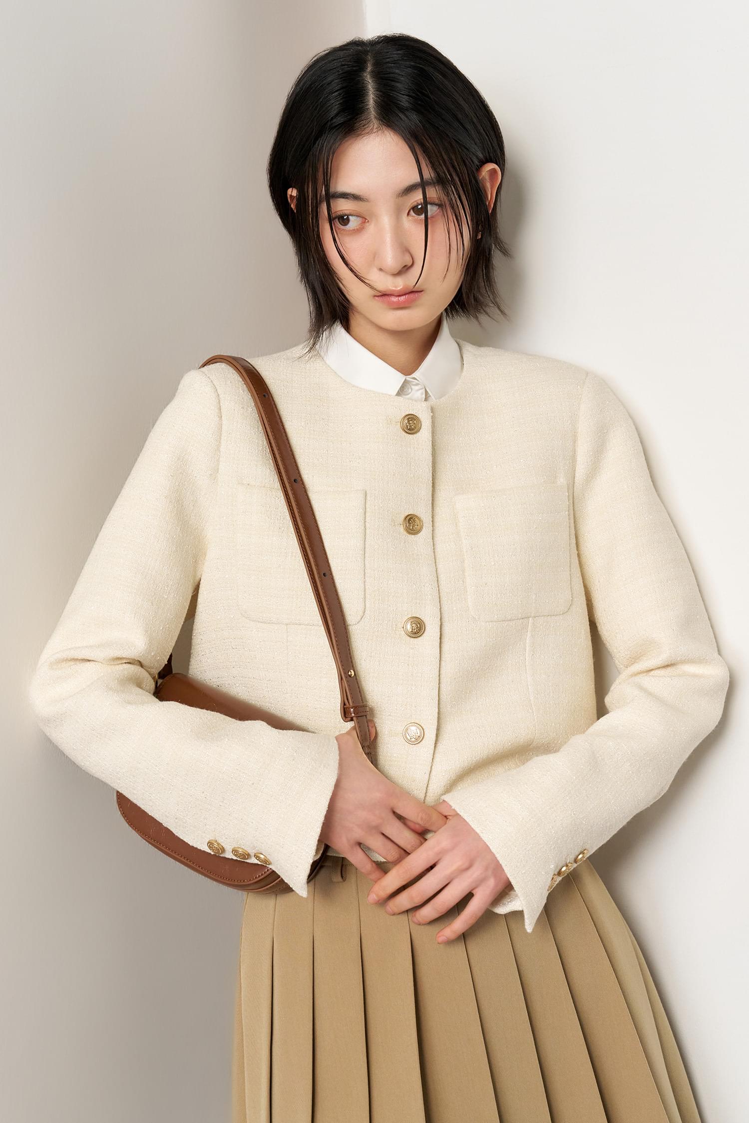 WOMANセミクロップツイードジャケット ジャケット シングルブレストジャケット レディース|韓国 GENERAL IDEA|コーディブック