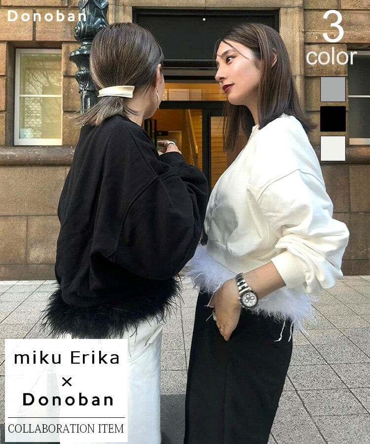 【クーポン利用で13860円!】「miku Erika×Donobanコラボ」トップス レディース スウェット トレーナー カットソー プルオーバー 裏毛 ファー ドルマン ショート丈 ボリュームスリーブ ボリューム袖 2way 長袖 体型カバー ゆったり 着痩せ 大人 コラボ