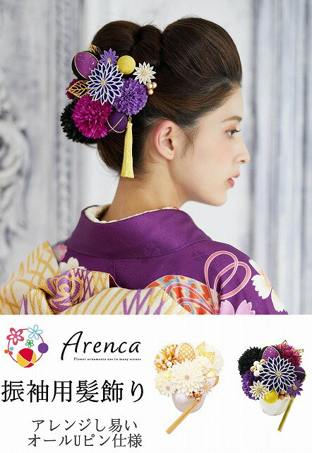 振袖 髪飾り Arenca 紫 菊 15点セット U Uピン 成人式 成人式用 振袖用 上品 優雅 結婚式 アクセサリ アレンカ 8356 振袖用髪飾り フラワーポット 和装 百花八重菊 振袖用 豪華 白 紫 豪華 送料無料