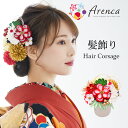 【Arenca】髪飾り 成人式 Uピン 12点セット フラワーポット入り インテリア パッケージ 選べる 5色 「茉莉華」ラナンキュラス つまみ細工 ちりめん 黒 ベージュ 青 ワイン 赤 白 振袖用 成人式 卒業式 結婚式 着物 日本製