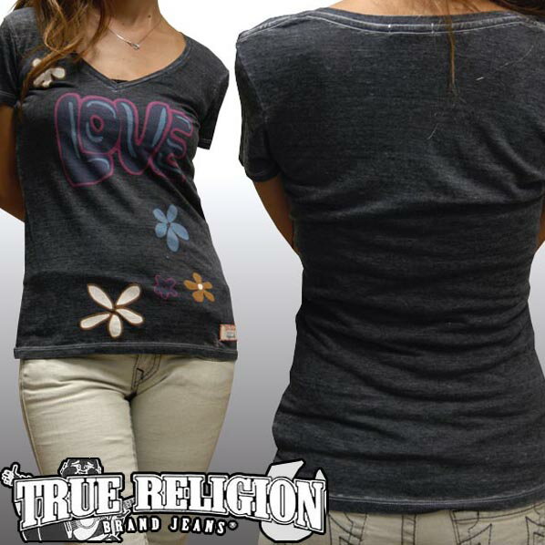 \店内全品ポイント11倍/ トゥルーレリジョン レディース Tシャツ 200種類の品揃え TRUE RELIGION LOVE BLOSSOM ブラック トップス シャツ インポート 海外 セレブ 着用 ハイブランド セレカジ カジュアル プレミアム ブランド サーフ セール