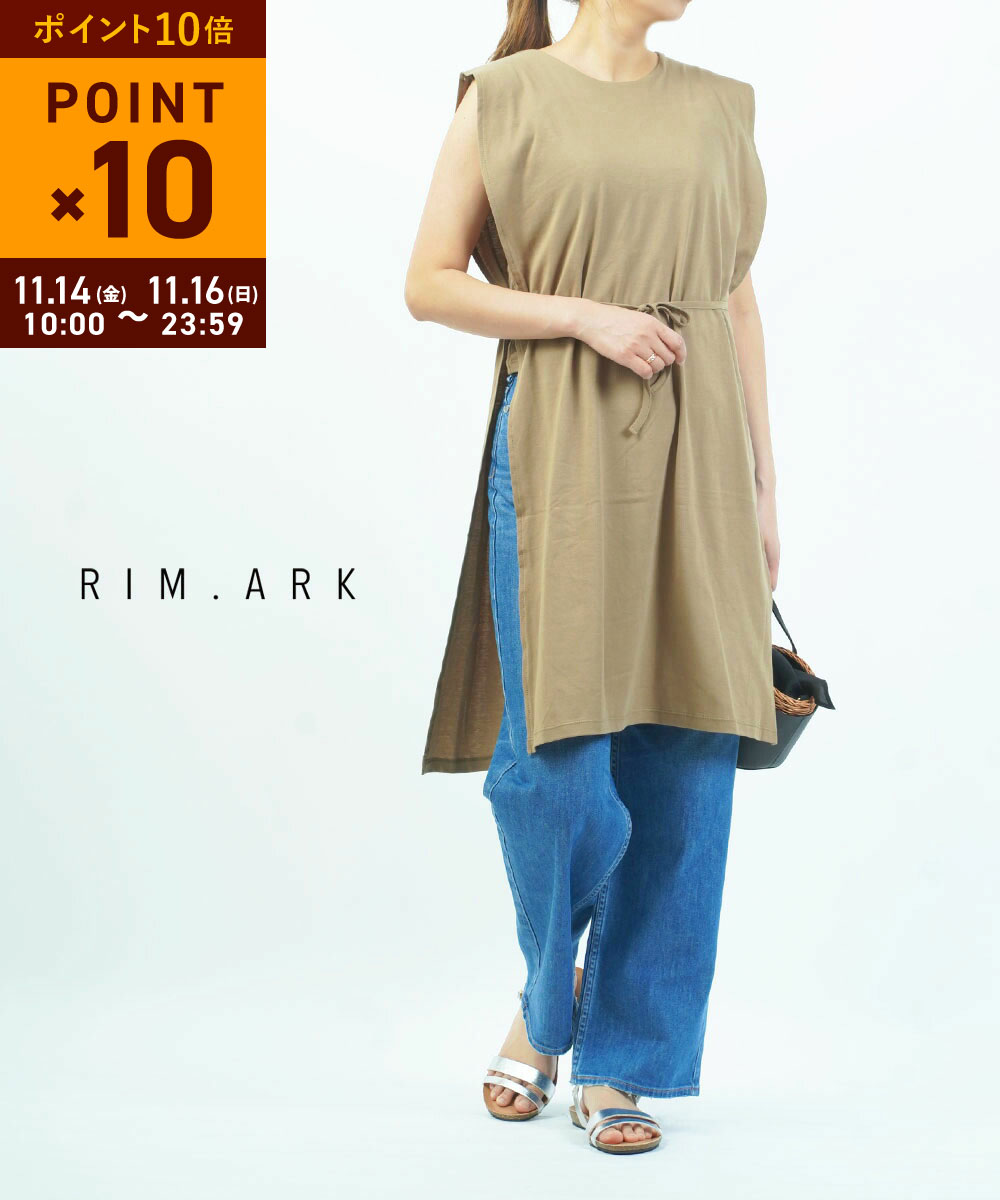 【11/14 10時からポイント10倍】リムアーク RIM.ARK カットソー ノースリーブ ロング Tシャツ ロング丈 チュニック ワンピース サイドスリット 体型カバー・460DSL80-0140-4202001(レディース)