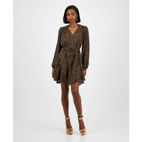 ゲス レディース トップス ワンピース GUESS Women's Wanda Long Sleeve Flare Dress Savage Night Print