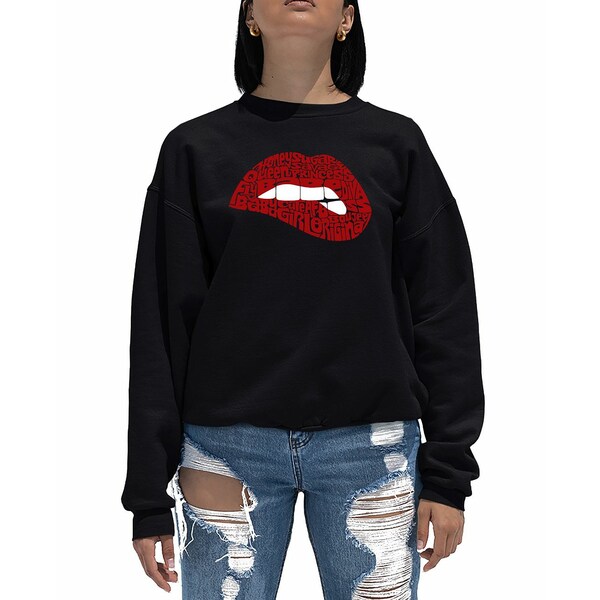 エルエーポップアート レディース パーカー・スウェットシャツ アウター Women's Word Art Crewneck Savage Lips Sweatshirt Black