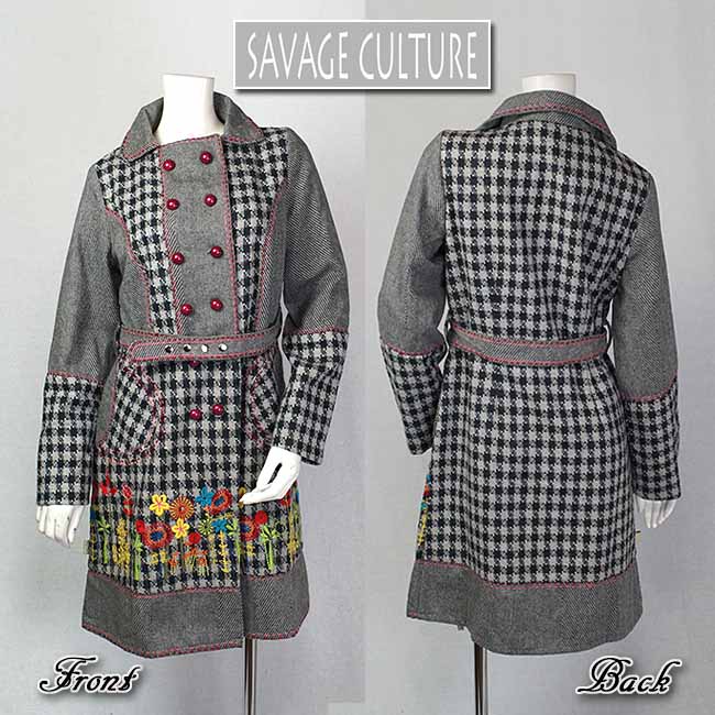 【合わせ買い対象】OUTLET スペイン "SAVAGE CULTURE" 円形ポケットとフラワー刺繍が可愛いウール コート サイズSとM【当初50926】