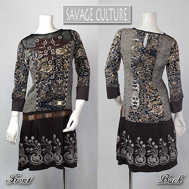 【合わせ買い対象】OUTLET スペイン "SAVAGE CULTURE" 幾何学柄と小花柄の刺繍が綺麗な切替ワンピース サイズSとM【当初27315】