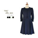 送料無料 日本製 Belleシリーズ "Emily" 8分袖 リボン ノーカラー ジャケット レディース シンプル 黒 白 紺 ネイビー 可愛い 上品 オフィス フォーマル お受験 卒業式 スーツ 可 母 ママ 卒園式 入学式 入園式 学校訪問 結婚式 大きいサイズ 春 秋 冬