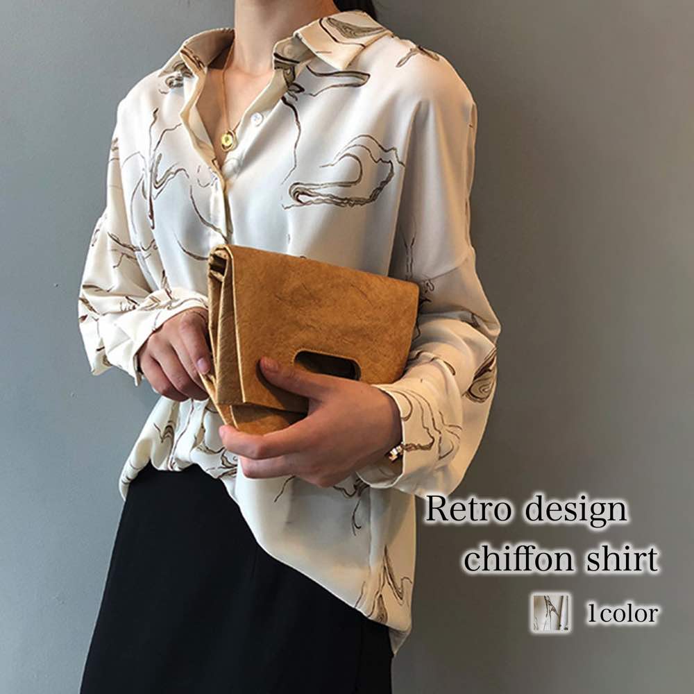 シャツ レディース レトロデザインシフォンシャツ ロゴ 大人 ブランド 秋 かわいい 春 麻 形態安定 襟付き ブラウス カジュアル 事務服 暖かい 長袖 おしゃれ スポーツ ゆったり しわになりにくい Tシャツ 冬 厚手 オフィス トップス カットソー ランニング ポロシャツ