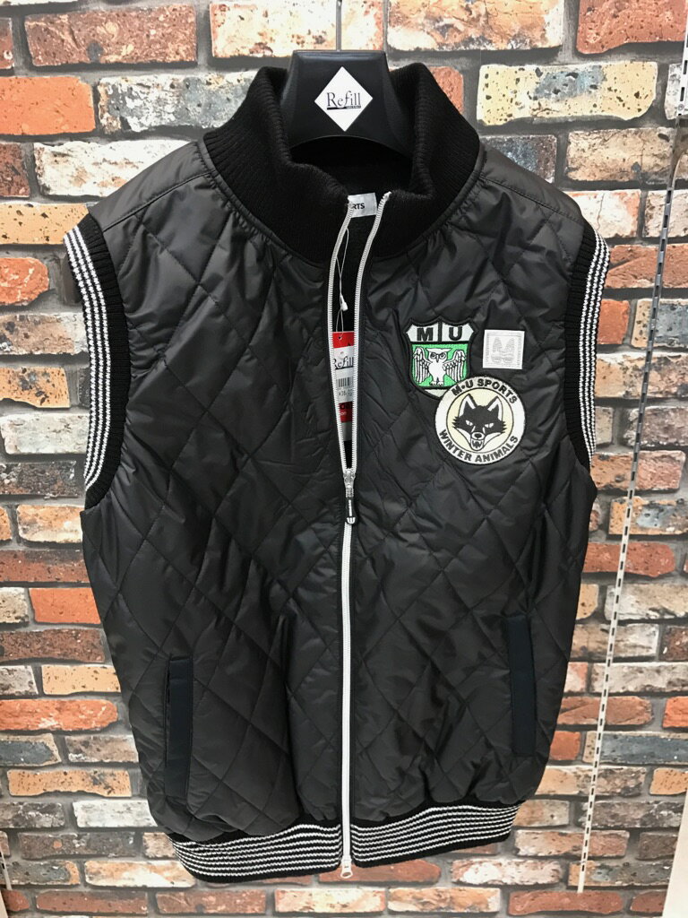 MU・SPORTSメンズベストブラック・スポーツ(ストレッチ)大人気ピンク・ホワイト・キャラクターバック・ゴルフ・プレゼント・進物・ラッピング・(1万円以上お買い上げで送料無料)700V6354-005BLK-50-定価¥38000