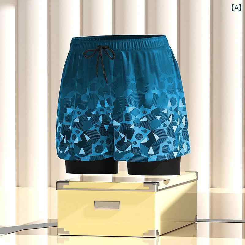 メンズ 夏 パンツ 水泳 水着 プール ビーチ スイミング スポーツ レジャー フェイク ツーピース ボクサー スリークォーター 速乾 フィットネス ドローコード付き 大きいサイズ