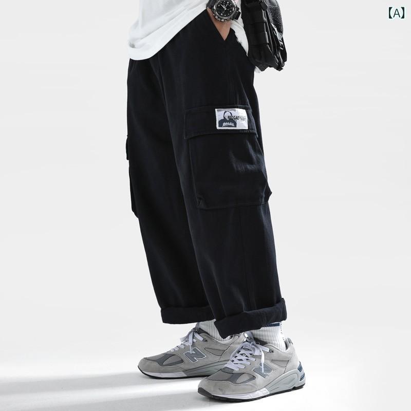 スラックスパンツ カジュアル ストレート スポーツ 粋な 綿 おしゃれ 綺麗 ワイド レッグ コットン ロング ズボン メンズ アメカジ マルチ ポケット 無地 ブラック ブラウン