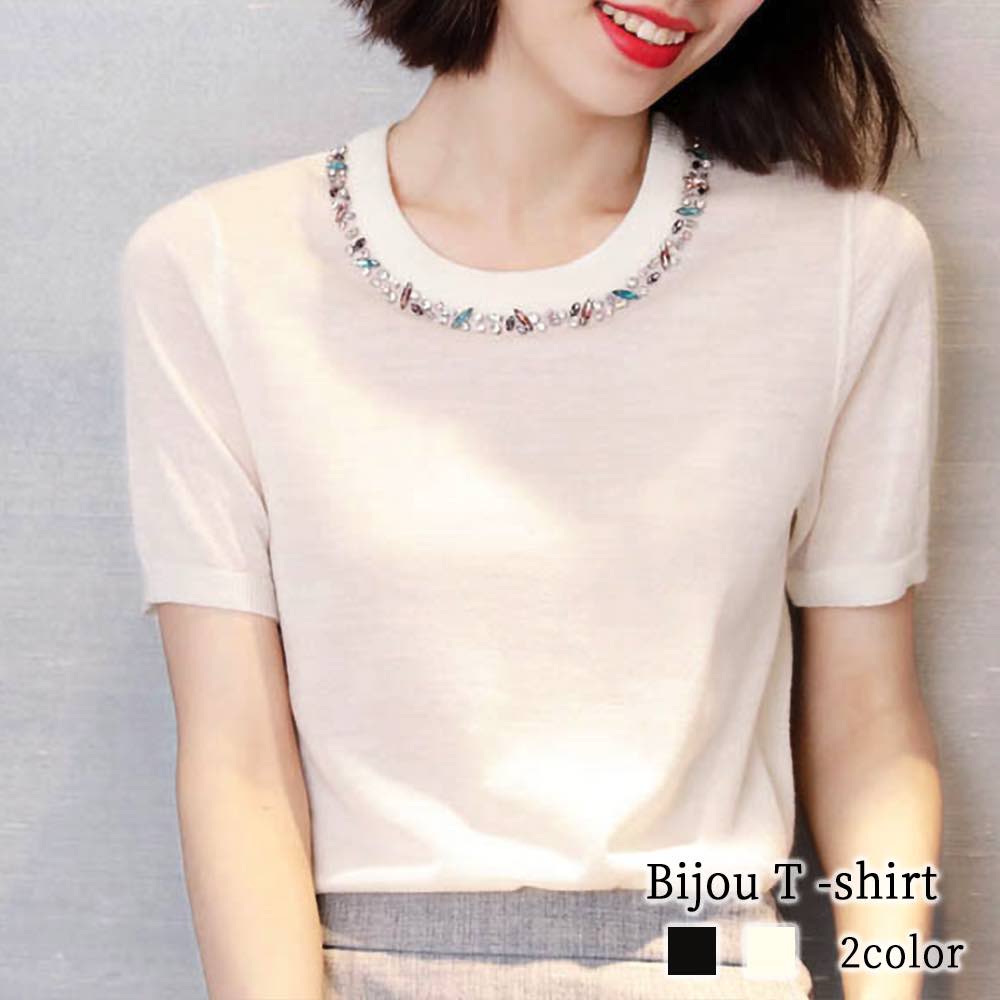 Tシャツ レディース ビジューTシャツ コーデ ブラウス ブランド ロング 薄手 半袖 かわいい 涼しい 大人 ブラック カジュアル ティーシャツ Vネック 7分袖 トレーナー 無地 人気 春 シャツ ジム 夏 ロゴ おしゃれ ゆったり スポーツ 40代 5分袖 カットソー