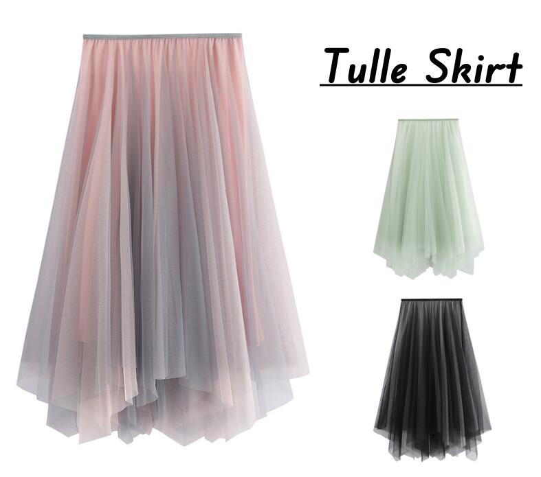 チュールスカート イレギュラー裾 ロング丈 レーススカート 無地 森ガール系 スカート 女性 大人 ダンス衣装 ボトムス ロング丈 チュール レース スカート 着回し お洒落 3色