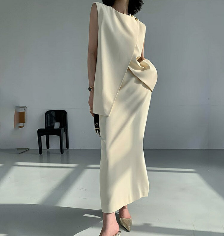 袖なしトップス 快適 ベスト イレギュラー 2点セット エレガント【素材】ポリエステル コットン【カラー】トップス,ロングスカート
