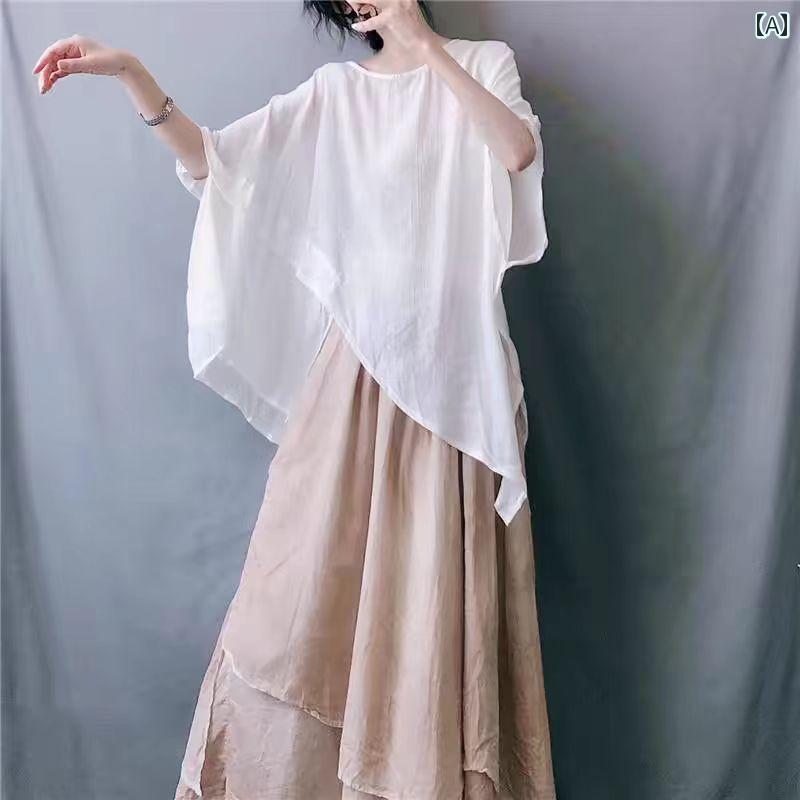 レディース カジュアル シャツ コットン リネントップス 大きいサイズ 女性用 T シャツ 夏 カバーアップ エレガント イレギュラー 薄手 日焼け防止 ブラウス バットスリーブ付き
