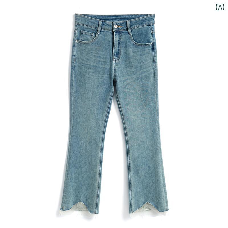 レディース ファッション オシャレ カワイイ 女性用 レトロ 風 ハイウエスト イレギュラー パンツ 裾 シースルー デニム ブーツ アップ パンツ