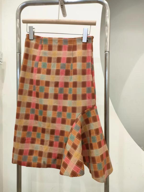 夏コーデ レディース ファッション 服 オシャレ カワイイ 女性用 シンプル 大人カワイイ 大きいサイズ 婦人服 ガーメント ファクトリー スカート チェック柄 レトロ ハイウエスト イレギュラー