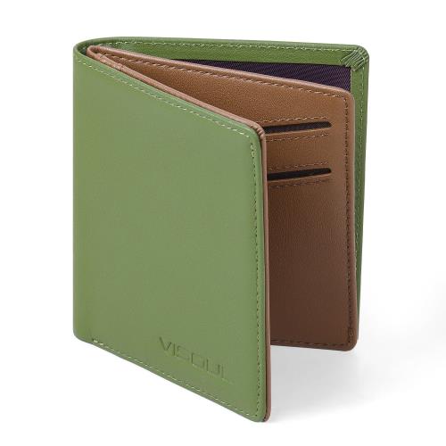 [VISOUL] カードケース 定期入れ 免許証入れ 札入れ 6枚カード入れ 免許証ケース 牛革 本革カードケース 定期入れ メンズ レディース パスケース イタリア革ミニ財布 薄型カードケース 軽量ケース 札入れ グリーン・チョコレート