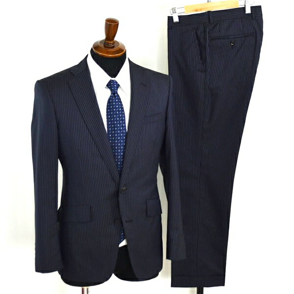 【商品説明】 ・春夏対応。2つボタンシングル。袖口4つ釦開き見せ。背抜き。センターベント。フラップポケット。ネーム刺繍なし。 ・ノータック。裾ダブル。 ・カラー:ダークネイビーにストライプ。 ※PC環境によって色味に誤差が生じる場合がございますのでご了承下さい。 ・素材:画像参照 ・型番:「No.BLK0051」 ・表記サイズ:ジャケット「165-90-78 A4」:スラックス「同左」 参考 日本サイズ:「M」「A4」体 程度(実寸サイズを参考にスタッフがスーツサイズを割り出したため、表記サイズと異なっていることがあります。 1つの理由としては前所有者様が寸法直しなどをされた事が考えられます。あくまでスタッフの主観となりますので必ず実寸をご確認下さい。) ・実寸:[ジャケット] 着丈67 袖丈58.5 肩幅42 身幅47 [スラックス] ウエスト(内周82 股上21 股下71.5 モモ幅28 裾幅19 [単位cm] 「ウエストは最大4cmひろげることができます。裾(股下)はシングルで最大7cm出せます。」 ※ウエスト表記サイズは、内周を計測したサイズとなります。 実寸の測り方 参照。 ※商品のサイズ補整等は当店では承っておりません。 現状でのお渡しとなります。 ※手作業での採寸により若干の誤差はご了承ください。 ■状態評価は「表地(全体的)」と、「裏地」の2種類の状態を分けて表記させて頂いております。 表地(全体的)状態:A 裏地状態:JB+B(裏地部分となりますので普段のご着用には問題なく、今後もまだまだご愛用頂けるお品です。)