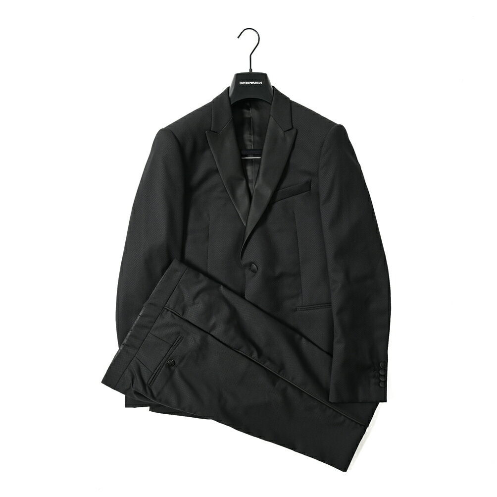 エンポリオ アルマーニ EMPORIO ARMANI M LINE タキシード スーツ 2Bシングルジャケット ノータックスラックス 側章入り ベルトレス メンズ ヴァージンウール 100% 織柄 ブラック イタリア ブランド
