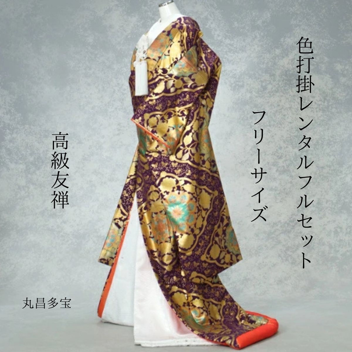 レンタル 丸章多宝 着物レンタル 結婚式レンタル 色打掛レンタル 色打掛 貸衣装 貸衣裳フルセット かつら 洋髪OK 和装 挙式 往復送料無料 白無垢紋服セットでセット割有 身長150cm~170cm対応 S|M|L|LLフリーサイズ 花嫁衣裳 手描き友禅 豪華絢爛 華やかに ロケーション撮影