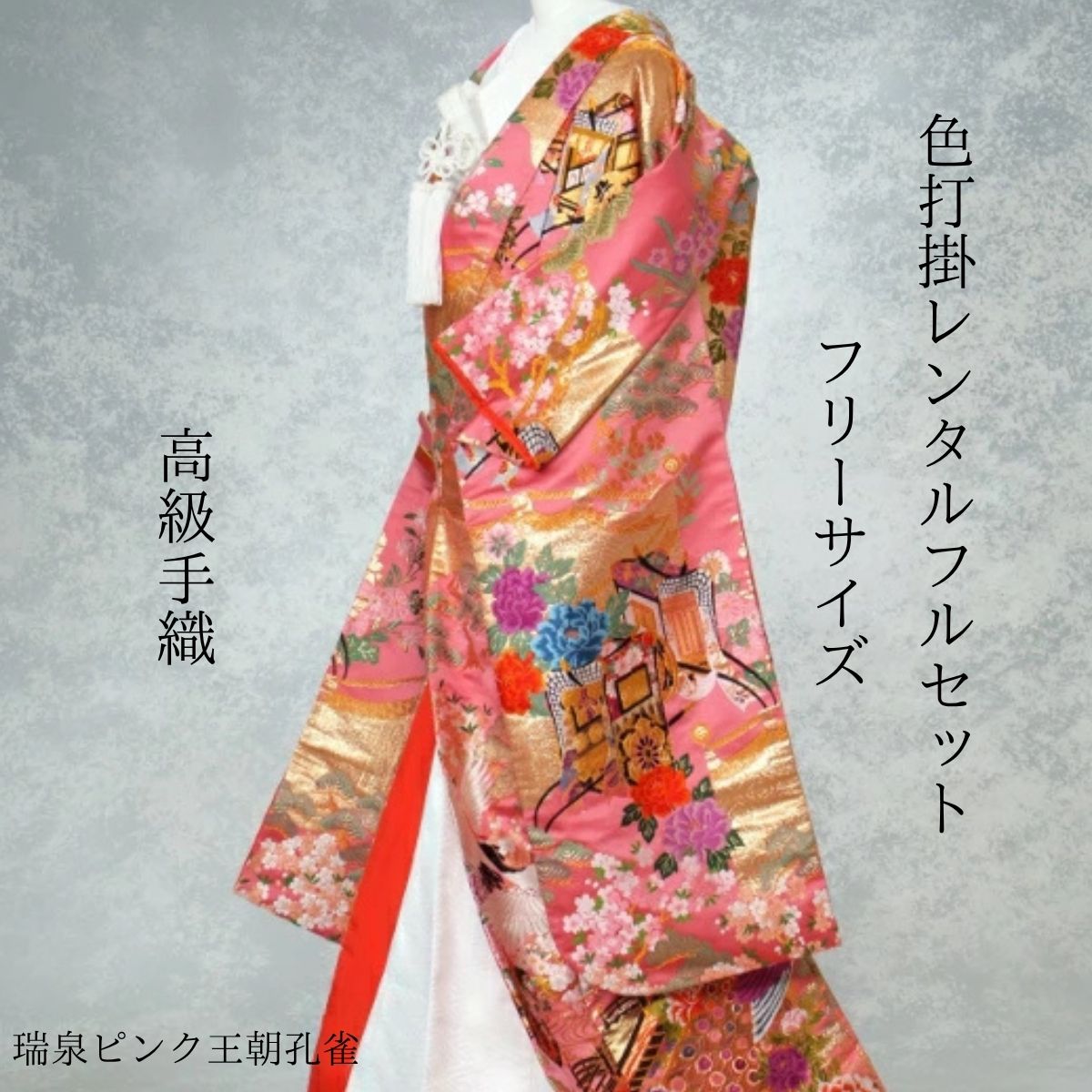 レンタル 瑞泉ピンク王朝孔雀 着物レンタル 結婚式レンタル 色打掛レンタル 色打掛 貸衣装 貸衣裳フルセット かつら 洋髪OK 和装 挙式 披露宴 往復送料無料 身長150cm~170cm対応 S|M|L|LLフリーサイズ 花嫁衣裳 ロケーション撮影 前撮り 職人渾身の一枚 手織