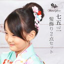 髪飾り 2点セット 七五三 3歳 7歳 女の子 パッチン 花 赤 着物 大きい 和装 リボン Watmosphere ワトモスフィア 【 子供 簡単 ヘアーアクセサリー スリーピン 礼装用 ヘアーアレンジ 】