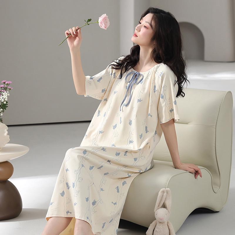 ・素材: コットン・主素材含有率: 95-100%・生地厚さ: 中厚 (141-160g/平方メートル)・襟型: 丸首・袖丈: 3/4袖・スカート丈: ロング・サイズ: M,L,XL,XXL・スタイル: 甘可愛い・機能: カジュアル、通気性、寝間着、部屋着、涼しい、快適、外出可・対象: 青年女性