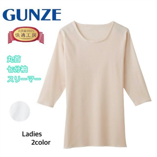 グンゼ 丸首7分袖スリーマー レディース 年間 快適工房 綿100% 長袖 コットン 下着 肌着 女性 天然素材 綿肌着 定番 トップス 長袖 インナー 丸型 ロングセラー GUNZE KQ5247 M-LL ギフト プレゼント