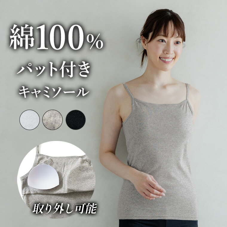 【店内全品P10倍!! 11/27〆】 綿100% パット入り キャミソール 3枚セットでお得!! 取り外しできる カップ インナー レディース 女性 春夏 トップス ブラトップ カップ付きパット 肌に優しい 抗菌 防臭 女性 肌着 30代 40代 50代 60代 婦人 送料無料 下着 L5170E-E