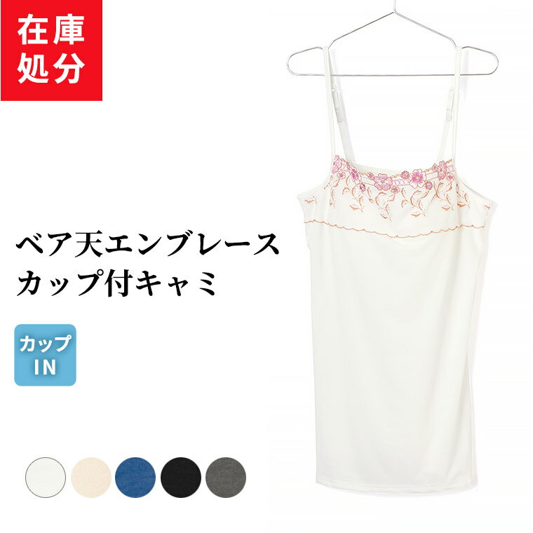 【店内全品P10倍!! 11/27〆】 在庫処分 カップ付き インナー キャミソール レディース 女性 婦人 春夏 ブラカップ 刺繍 花柄 素肌 汗 対策 シャツ ブラトップ ブラカップ パット L5335N-R