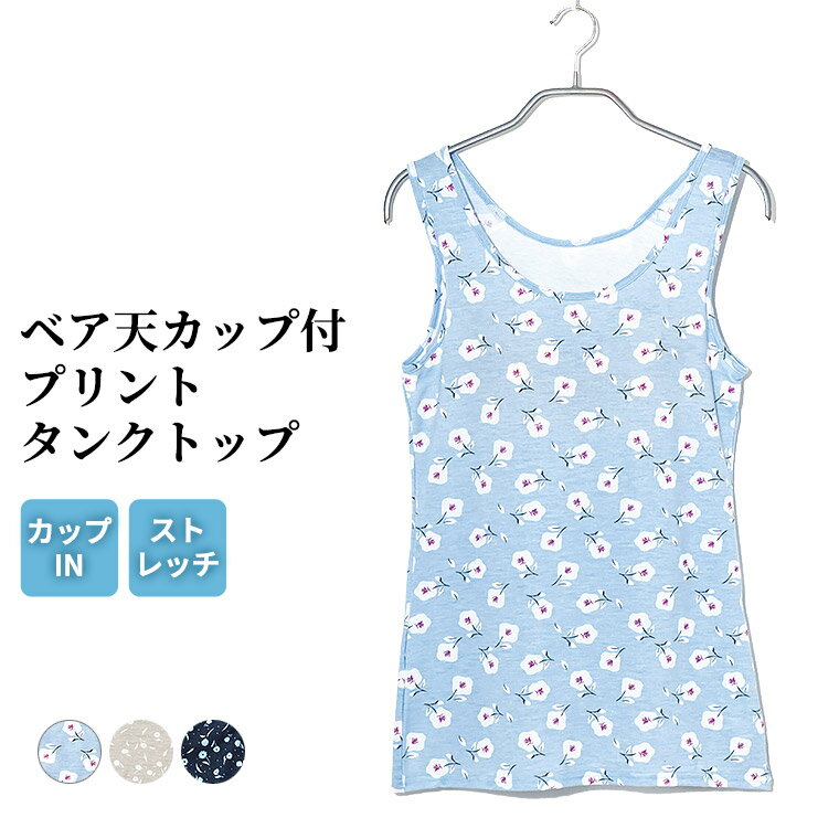 【店内全品P10倍!! 11/27〆】 ブラカップ付き プリント タンクトップ レディース 女性 春夏 インナー 部屋着 ルームウェア ベア天竺 女性 肌着 30代 40代 50代 60代 婦人 L5541E-R