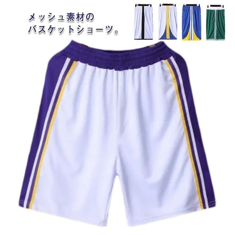 バスケット ショートパンツ スポーツウェア メンズ 配色 接触冷感 ひんやり ストレッチ ハーフパンツ メッシュ ワイド 運動着 カジュアル ゆったり