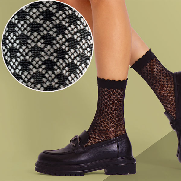 イタリア インポート ブランド レース柄ソックス BC DONNA NICKY レース柄ソックス 黒