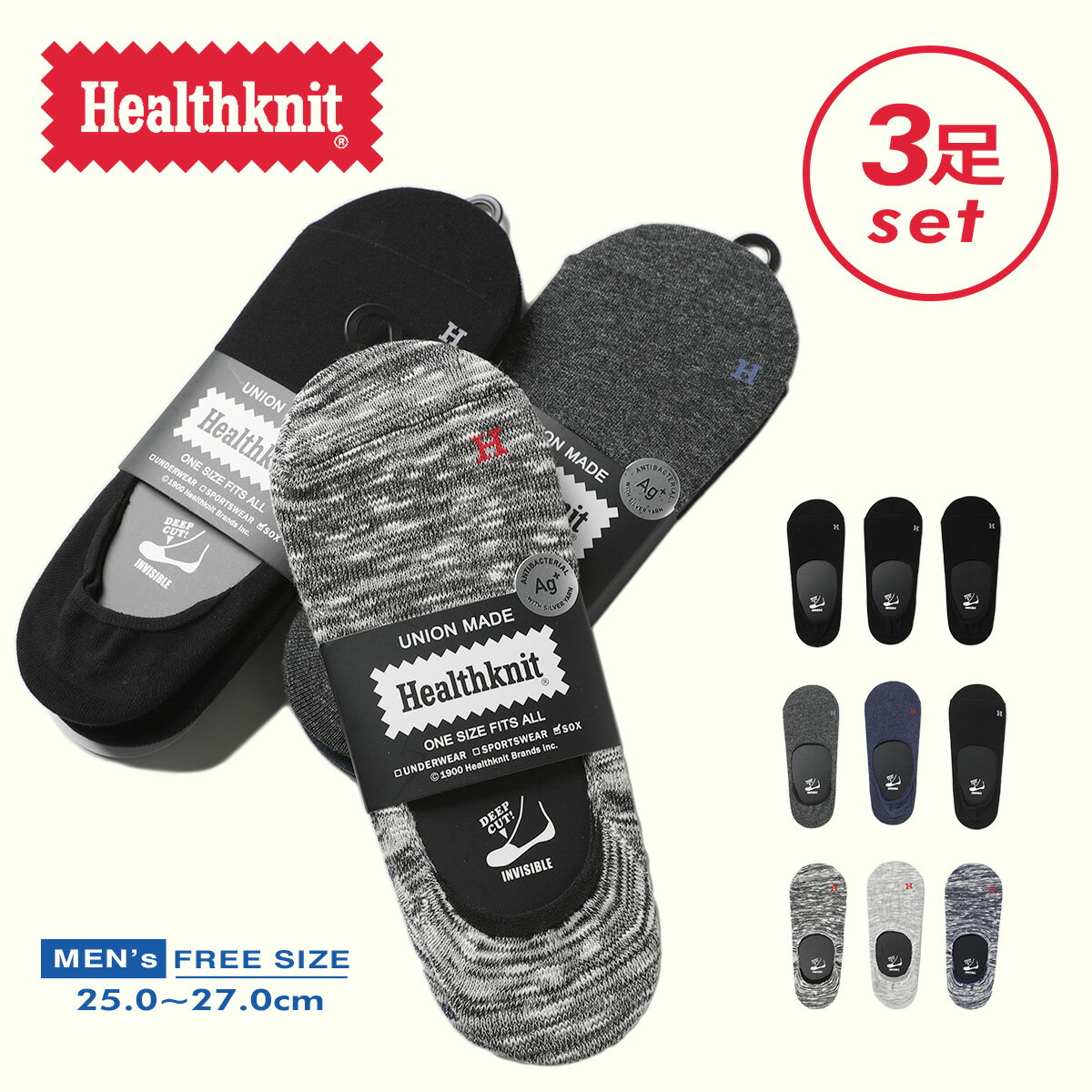 3足セット 抗菌 防臭 Ag ソックス 靴下 メンズ Healthknit ヘルスニット 男性用 春 夏 秋 冬 カバーソックス フットカバー 滑り止め アウトドア スポーティー ポリエステル 綿混 ロゴ 通勤 通学 休日 お洒落 ギフト プレゼント グッズ 小物 ブランド