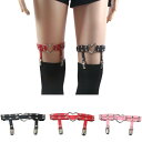 ガーターベルト 原宿系 パンク ファッション レザー メタル装飾 太もも レッグハーネス ダブルクリップ ストリートダンス 衣装 セクシー コスプレ ブラック レッド(x2)