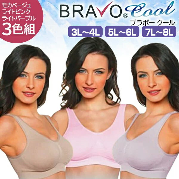 シェイプゾーン ブラボークール COOL 3L〜4L 5L〜6L 7L〜8L Shape Zone BRAVO クール ブラパッド付き ノンワイヤー ブラジャー 3枚セット 蒸れ防止 ナイトブラ 夏ブラ 女性用 レディース 下着 大きいサイズ スポブラ ブラボーCOOL バスト