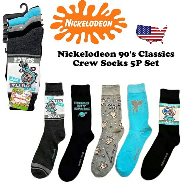 ニコロデオン キャラクター 靴下 5足セット クルーソックス キャラクター ニコロデオン レン&スティンピー ヘイ・アーノルド ラグラッツ グッズ メンズ くつ下 くつした かわいい おしゃれ 男の子 アメカジ アメキャラ アメリカン雑貨 アメリカ雑貨 25cm 26cm 27cm 28cm
